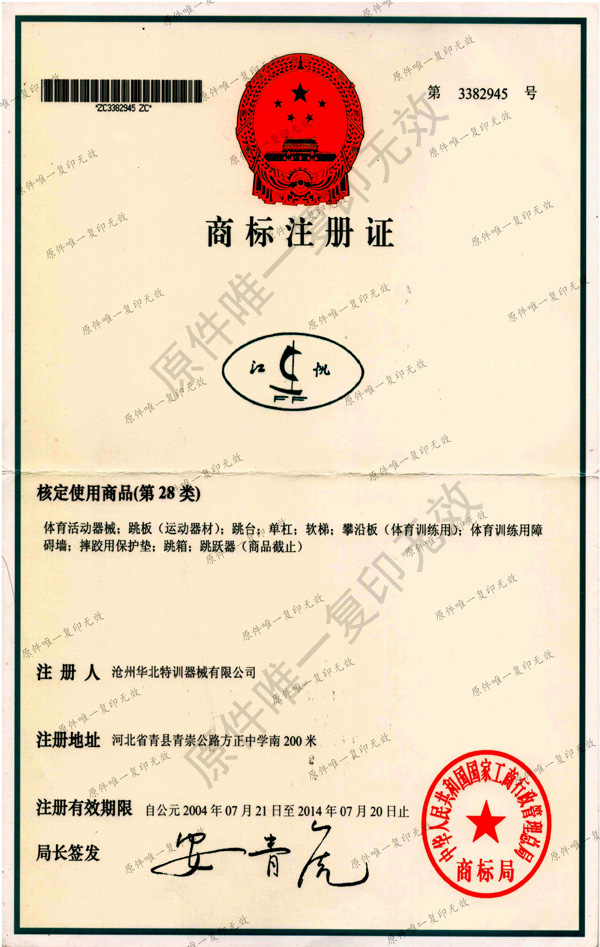 江帆商標(biāo)注冊證書