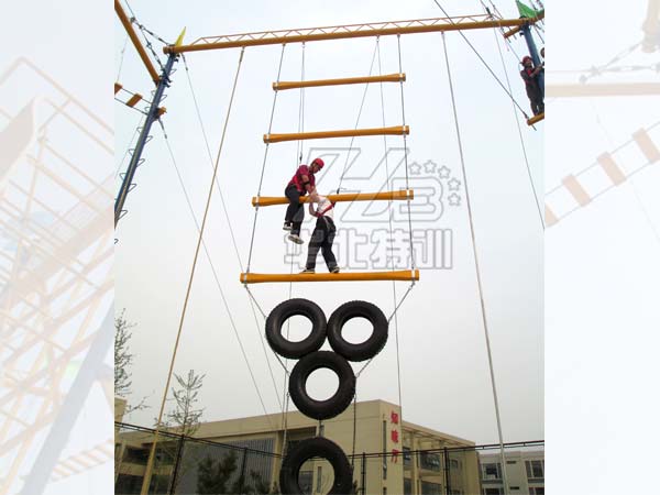 上一篇為大家分享了:拓展訓(xùn)練器材之網(wǎng)繩蕩木橋的介紹及意義,下面由華北特訓(xùn)攀巖墻廠家的小編為您分享:拓展訓(xùn)練器材之天梯的介紹及意義。 天梯也叫巨人梯,該項目常規(guī)寬5.7米,高12米屬于高空拓展訓(xùn)練器材之一。 天梯是由四根串聯(lián)在空中的圓木組成,它們以梯狀懸于12米高空。成員按2人一組,相互配合,利...