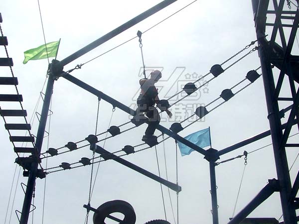 上一篇為大家分享了:拓展訓(xùn)練器材之獨木橋的介紹及意義,下面由華北特訓(xùn)攀巖墻廠家的小編為您分享:拓展訓(xùn)練器材之叢林繩橋的介紹及意義。 叢林繩橋常規(guī)5.7×12(高),占地12.7米×12.2米。叢林繩橋是單人挑戰(zhàn)項目,屬于高空拓展訓(xùn)練器材之一。有主保護(hù)人員檢查保護(hù)系統(tǒng),確認(rèn)沒有問題后,學(xué)員由立柱攀爬至叢林繩橋...
