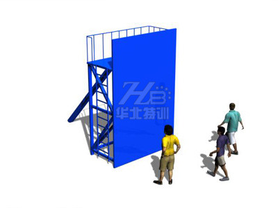 所有參訓(xùn)人員以小組為單位,通過(guò)相互配合、幫助、在最短的時(shí)間內(nèi)由四米墻正面到達(dá)頂部平臺(tái)。