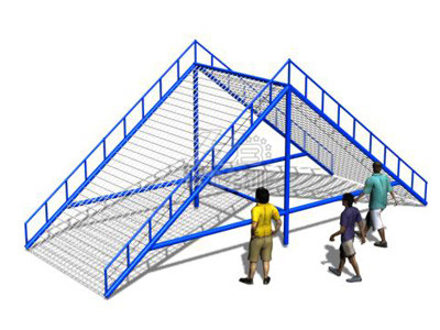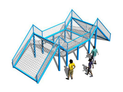參訓(xùn)人員從斜網(wǎng)的一端爬至最高點并翻越最高點,由另一端下至地面