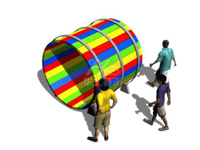 參訓人員站在桶內(nèi)向前慢慢走動,利用身體重心的改變使?jié)L筒快速轉(zhuǎn)動。
