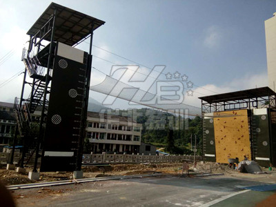 消防員攀爬橫渡組合訓(xùn)練器械包含:速度攀巖、山岳救援、地下救援、繩索橫渡、懸垂下降、豎井救援等項(xiàng)目,由攀巖塔架、懸垂下降塔架及橫渡組成