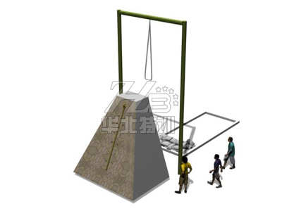 阻絕墻呈梯臺形狀建筑,下底為4×4米正方形,上底為1×1米正方形,高4米,阻絕墻斜面上固定一條繩索