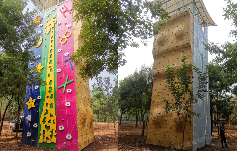 規(guī)格:總高12米(不含遮陽棚),平臺高10米。 器械含四面項目:造型攀巖、平面攀巖、趣味攀巖、速