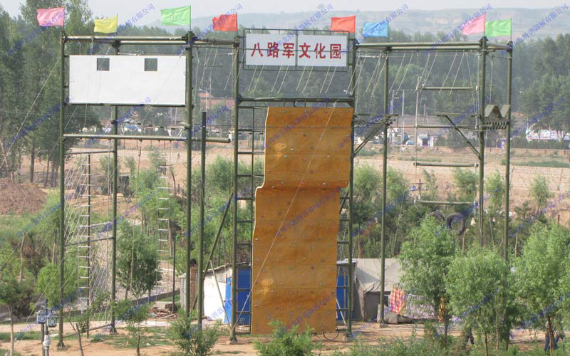 高空拓展器械: A08LB-G 。 地面拓展器材:畢業(yè)墻、雙面背摔臺、地面蕩木橋、地面相互依存、梅花樁、旋梯、轉(zhuǎn)輪、浪木等。 軍體拓展設(shè)備:400百米障礙。 |