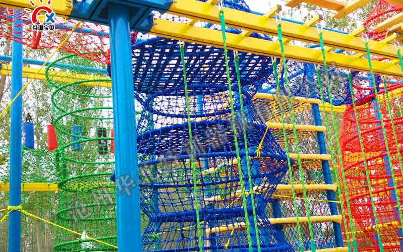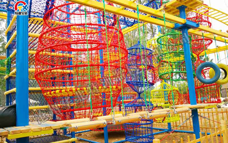 兒童繩網(wǎng)探險:是兒童拓展訓練采用的一種形式。能鍛煉青少年兒童手腳力量,攀爬能力,手眼協(xié)調能力,平 衡能力,增加膽量,勇氣,具有強身健體,鍛煉精神意志等作用。