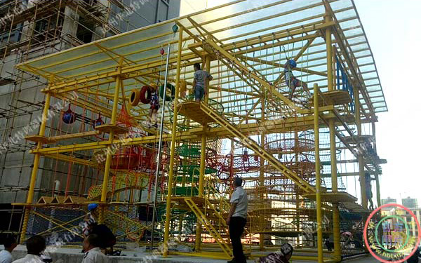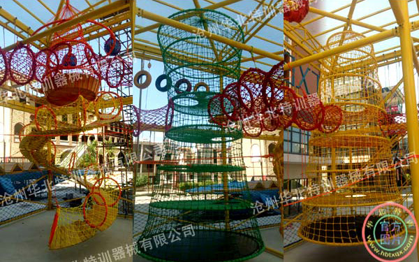 桂林市臨桂區(qū)時代楓林兒童拓展樂園是客戶經過前期的考察,經過綜合對比最終確定由我方(華北特訓)承建。我方根據使用方的場地、預算及要求和我公司從事拓展基地建設十多年來的經驗,再對拓展市場需求詳細分析之后,推薦設計。最終確定方案為兒童雙目兩層加攀巖的綜合拓展架,現已建設完成并投入使用。