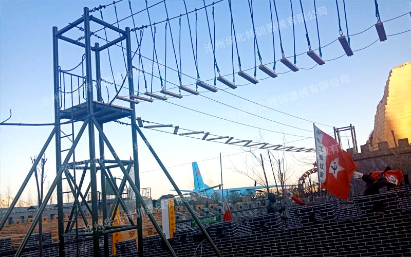 濟(jì)寧嘉祥富山國防教基地為豐富國防教育功能,在我公司(華北特訓(xùn))定制高空組合器械一套,空中穿越項(xiàng)目一套,青少年素質(zhì)拓展器械--重走長征路一套現(xiàn)已建設(shè)完成,并投入使用。