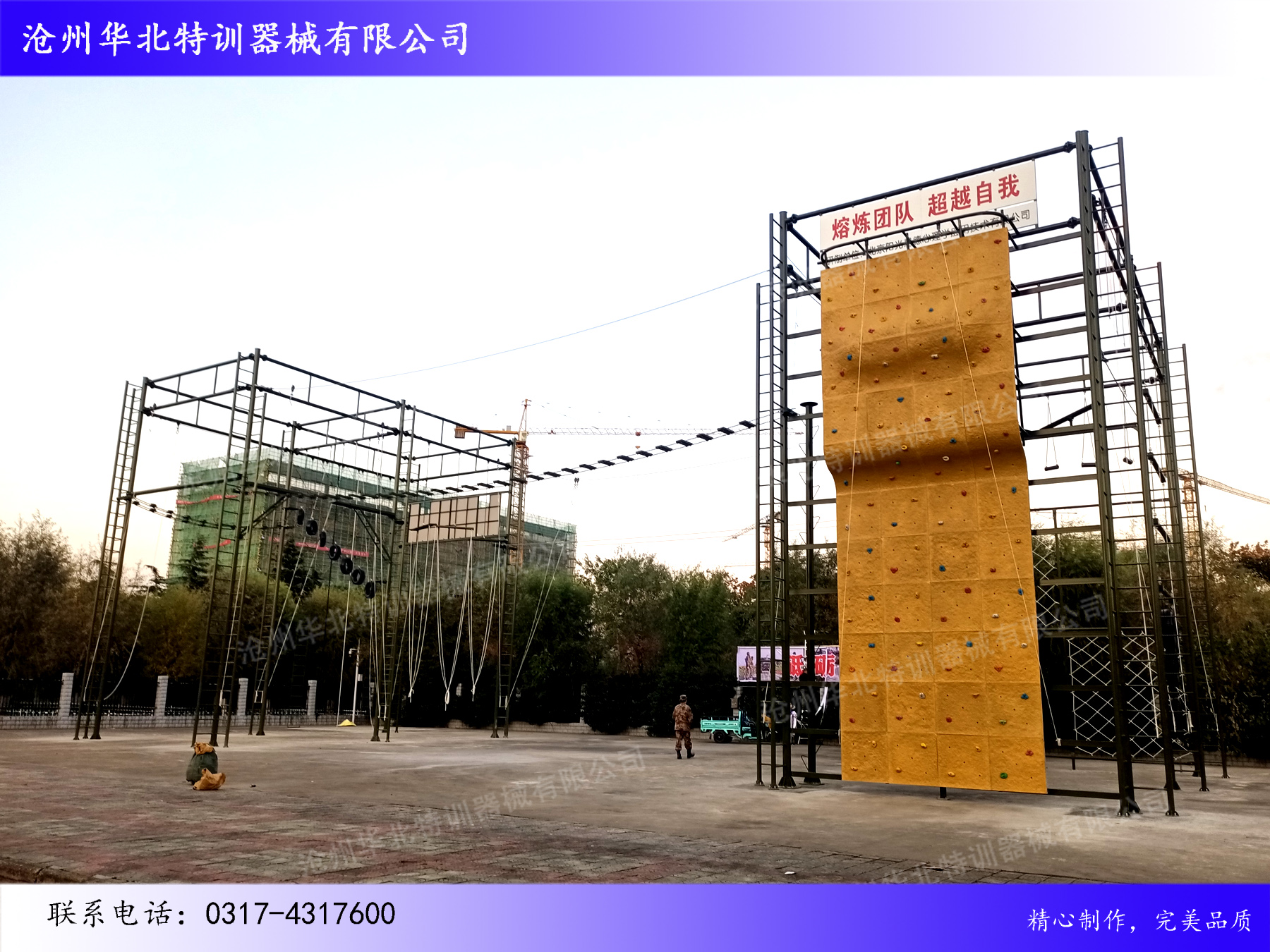 滄州華北特訓器械有限公司經(jīng)過近二十年的發(fā)展,合作客戶已經(jīng)覆蓋軍隊,武警,公安,司法,消防,邊防,教育,大中企業(yè),旅游景區(qū),休閑娛樂等多個行業(yè)。產(chǎn)品包括:高空拓展訓練器械(心理行為訓練器械),軍警拓展訓練器械,公安消防拓展訓練器械,地面拓展訓練器械,青少年素質(zhì)拓展訓練器械(重走長征路),水上拓展訓練器械,叢林探險拓展訓練器械 ,CS拓展訓練器械,安全裝備等系列產(chǎn)品,同時為客戶提供拓展訓練器械維護保養(yǎng),人員培訓,基地運營等多方面的培訓,期待與您合作:0317-4317600!