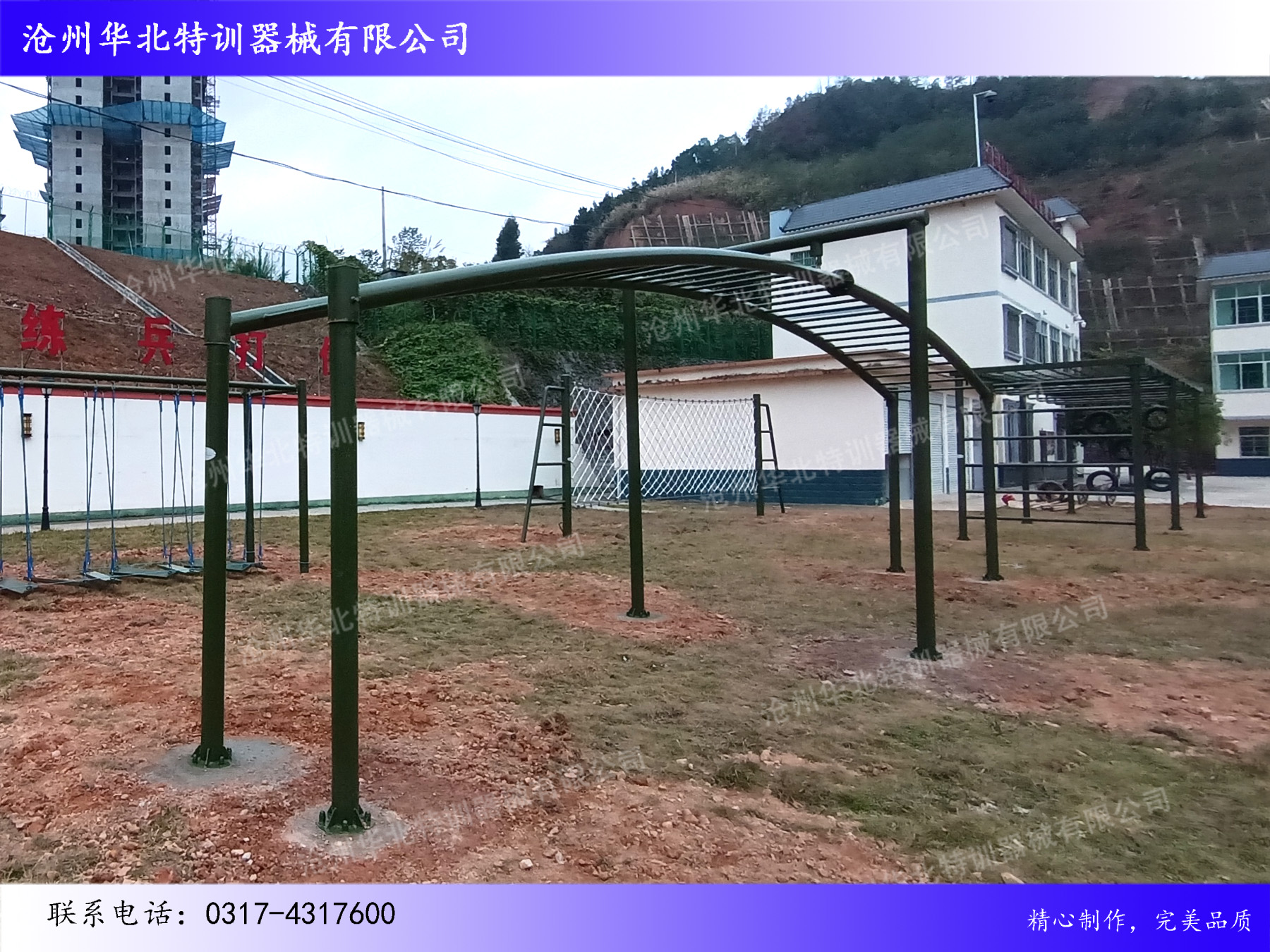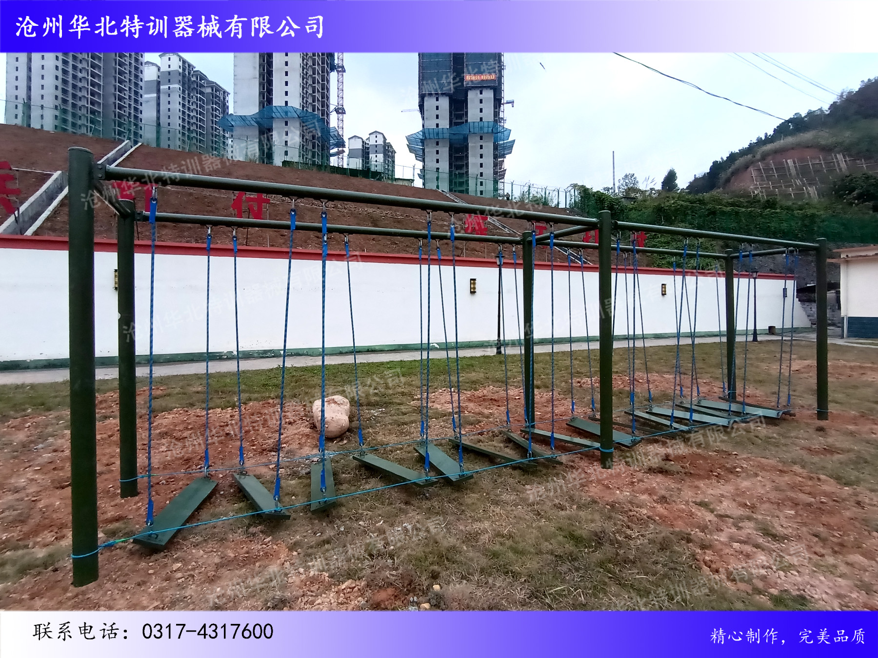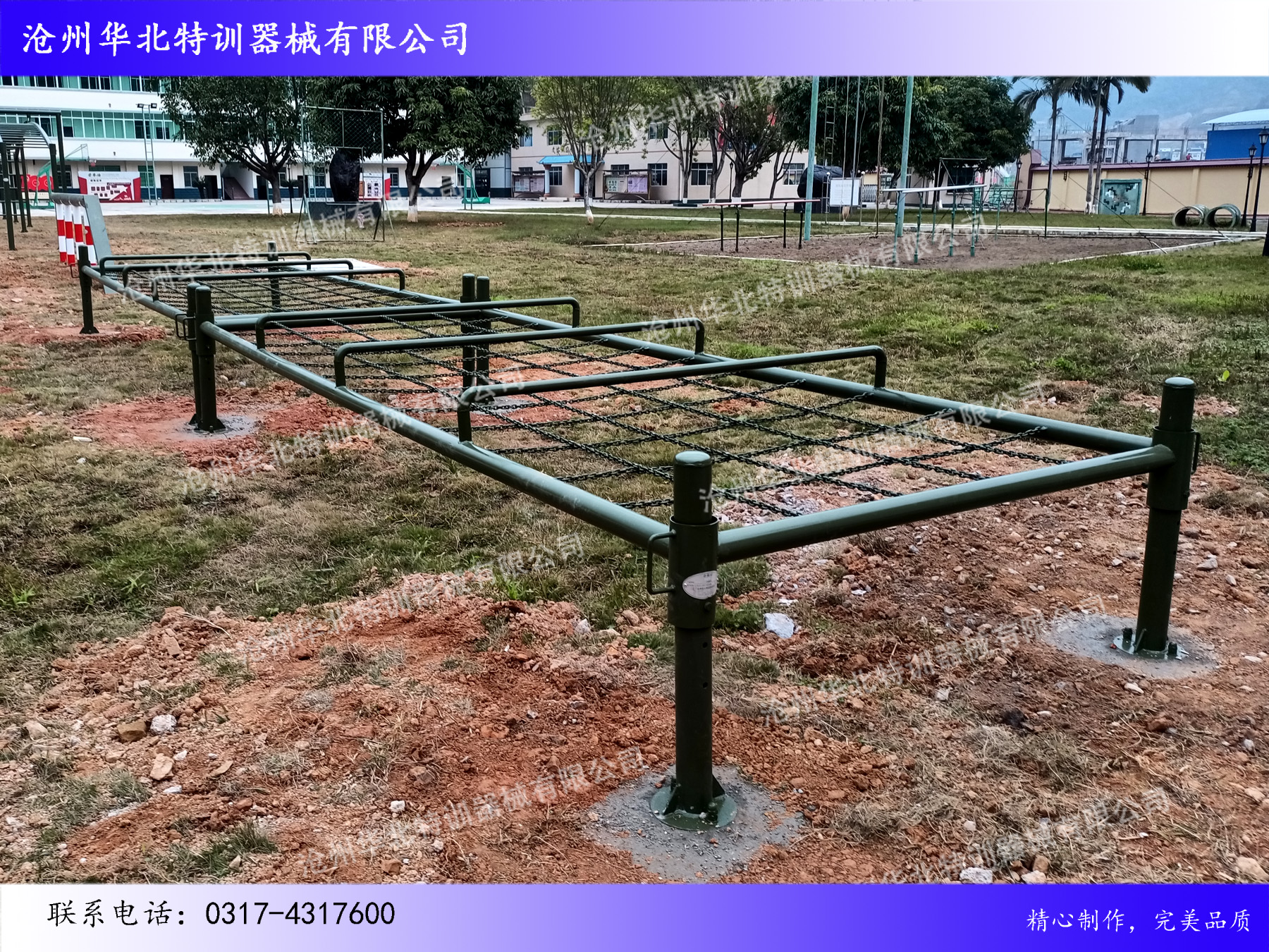 備注:以上“廣西某部隊(duì)拓展訓(xùn)練器械項(xiàng)目圓滿(mǎn)完工!”圖片是客戶(hù)樣品,如有需要可致電我公司,根據(jù)您的需要量身定制、設(shè)計(jì),并提供售后一條龍服務(wù)!咨詢(xún)服務(wù)熱線(xiàn): 17731766069(微信同號(hào))