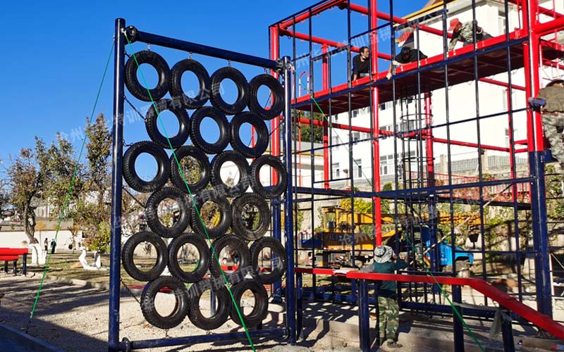 此訓練場主要包含繩索救援訓練架,消防200米滅火障礙。