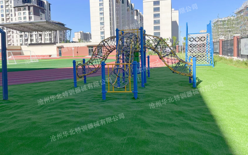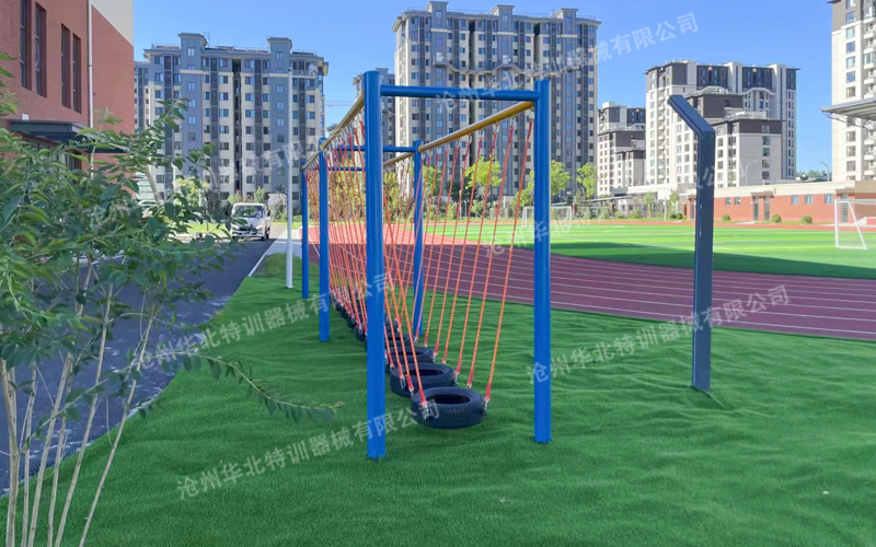 此拓展基地主要包含主要包含:輪胎碰碰橋、爬網(wǎng)、四角鉆籠。現(xiàn)已建設(shè)完成并投入使用。