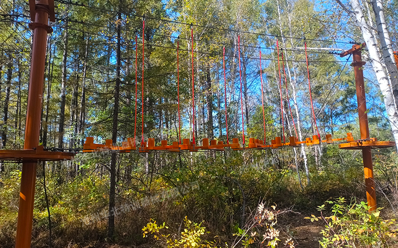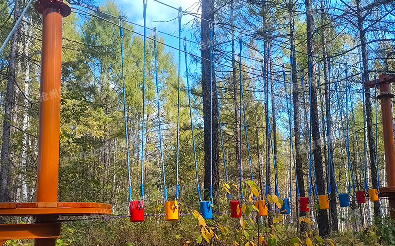 叢林穿越拓展項目的基本項目中包含著:獨木橋,翹板橋,緬甸橋、方板橋、圓木橋、網(wǎng)墻、攀巖、獨木橋 、輪胎路、高低橋、滑索、網(wǎng)兜橋等幾十種項目,這些項目的隨意搭配就能夠很好的體現(xiàn)出我們叢林拓展的趣味性,以及對參與者的感官一定的沖擊性。而且受用的群體很大,在4-60歲身體健康的就可以接受挑戰(zhàn),而且可以根據(jù)體驗人群的不同,還可以設(shè)定不同的線路,線路的不同能夠帶來不同的體驗與樂趣,讓參與者在玩的同時能夠有更強(qiáng)的互動性。