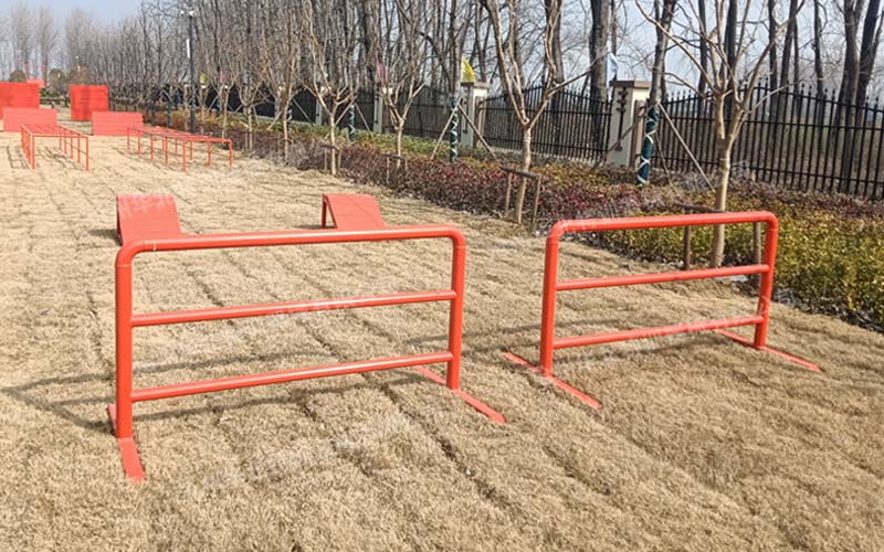 兒童國(guó)防軍事障礙賽單道場(chǎng)地長(zhǎng)50米×寬2.5米。通常為雙道并列設(shè)置。項(xiàng)目依次為獨(dú)木橋、高欄、斜坡、地籠、矮墻、高板6個(gè)項(xiàng)目。