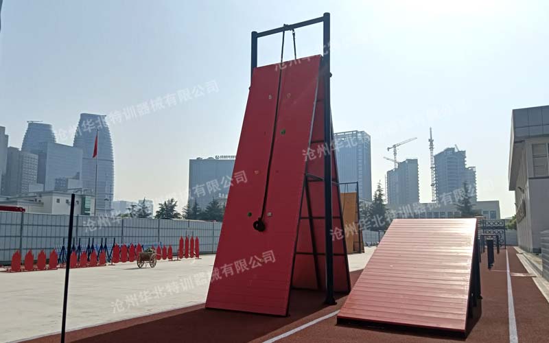 200米滅火障礙單個場地長100米,寬6米,面積600平方米。跑道全程200米,土質地面,有條件的可鋪設塑膠,共設置10個障礙物。分別為:高架速降、獨木跨橋、倒木翻越、塔頭跳躍、峭壁吊繩、陡坡沖刺、密林穿行、河流橫渡、翻山越嶺、跨越溝渠。