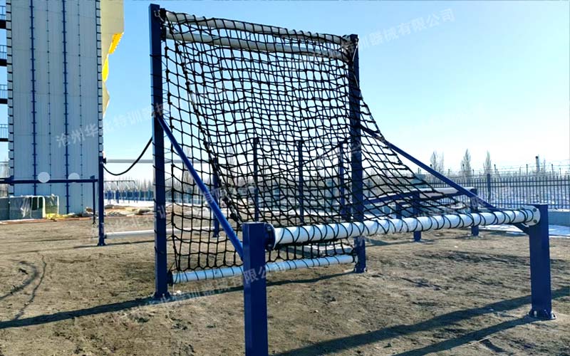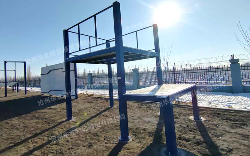 極限越障訓練場設施包含各種復雜且具有高難度的障礙物,如高墻、攀爬網(wǎng)、繩索橫渡、獨木橋、高低杠等。這些障礙物的設計旨在考驗特警隊員的力量、敏捷性、平衡感和心理素質。