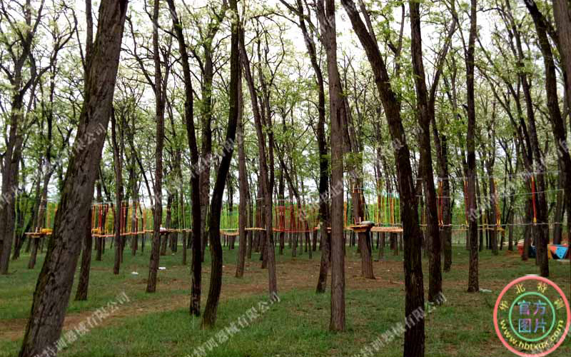 要求場地有大的樹木,樹木直徑要求大于20厘米以上,高度要求在6米以上,因為要在樹木上安裝站立平臺和架設(shè)項目,要求樹木能夠承受足夠的拉力。如果樹木過細(xì)高度不夠,就需要架設(shè)仿真樹木或鋼構(gòu)的立柱來替代樹木。