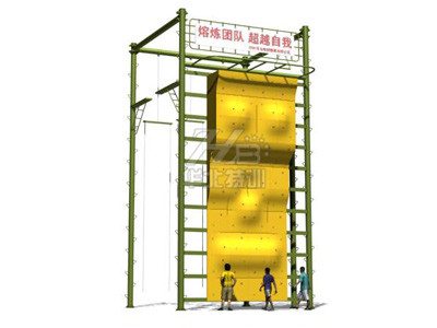 總體尺寸:柱間距5.7米,高度12米。 項目:單杠、斷橋、攀巖、合力橋。單杠、合力橋高度9米,斷橋高8.7米。攀巖40塊,上帶廣告欄